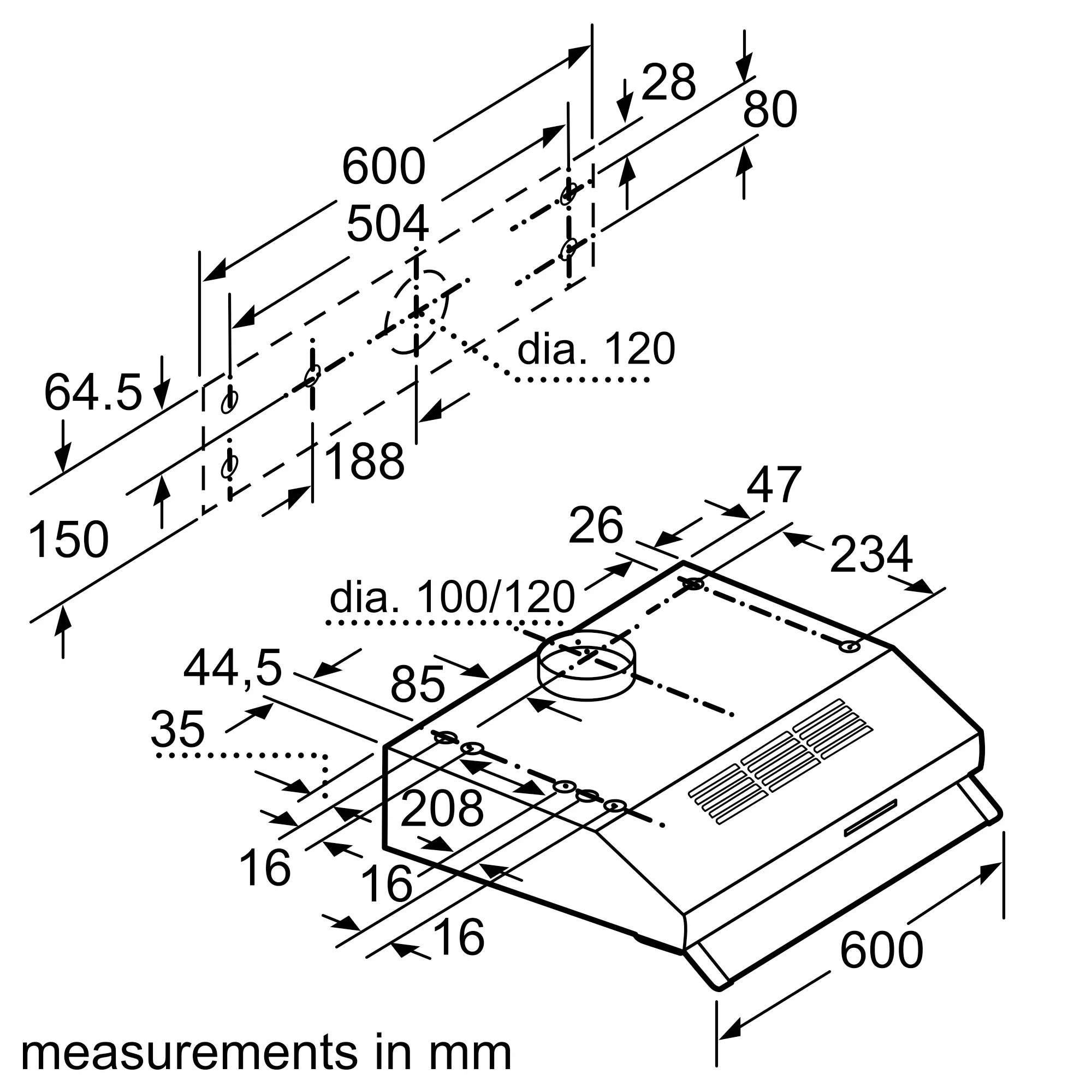 Series 2 built-under cooker hood 60 cm Black